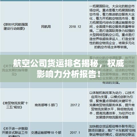 随着全球化的不断发展,航空货运在物流领域中的地位日益凸显,各大航空公司的货运服务已成为其综合竞争力的重要组成部分,本文将围绕“航空公司货运排名”这一主题,探讨全球范围内主要航空公司的货运业务表现及其影响力。