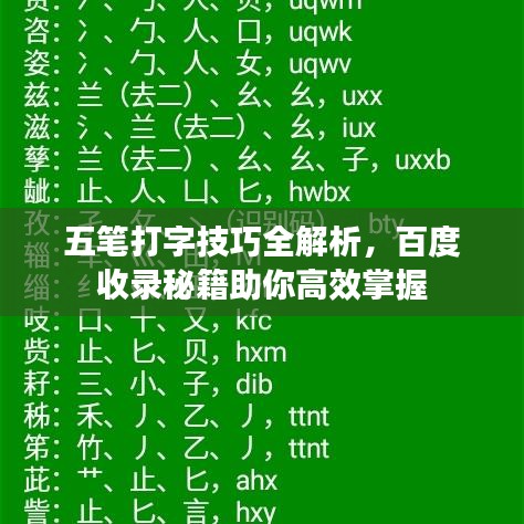 在信息时代的浪潮下,文字输入是我们日常生活与工作中不可或缺的一项技能,随着科技的进步,输入法种类层出不穷,其中五笔打字作为一种高效、准确的输入方式,在各行各业中仍占据一席之地,而今天,我们将通过“百度一下”来深入了解五笔打字,掌握其高效输入技巧。