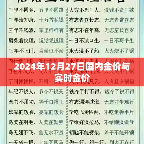 随着全球经济形势的不断变化,黄金作为一种重要的贵金属和大宗商品,其价格受到广泛关注,本文将重点关注2024年12月27日国内金价与实时金价,分析影响黄金价格的因素,并探讨未来黄金市场的可能走势。