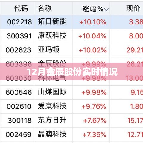 随着年末的到来,各行各业都在为年终目标进行最后的冲刺,金辰股份作为行业内的佼佼者,其最新动态和实时情况备受关注,本文将为您带来关于金辰股份在12月的最新实时情况,包括业绩报告、市场动向、研发进展以及未来展望等方面的信息。
