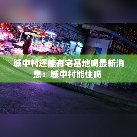 总之,城中村是否还能有宅基地,将是一个复杂的问题,需要政府、居民和社会各界的共同努力。