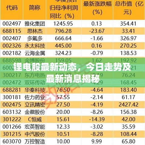 随着新能源市场的蓬勃发展,锂电行业日益成为投资者关注的焦点,锂电股市场呈现一系列新的动态,本文将为您带来最新的锂电股消息。