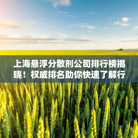随着化学工业的发展,悬浮分散剂的需求与日俱增,上海,作为中国的经济中心,其化学原料及制剂行业尤为发达,众多悬浮分散剂公司在此崭露头角,本文将为您呈现上海悬浮分散剂公司的排名,以供参考。