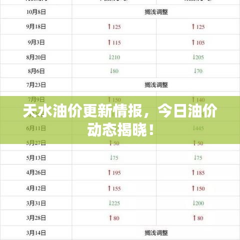 随着全球经济的不断发展和变化,油价问题一直是人们关注的焦点,对于天水地区的居民来说,了解当地油价的变化对于日常生活和出行成本有着重要的影响,本文将为大家带来今日天水油价的最新消息。