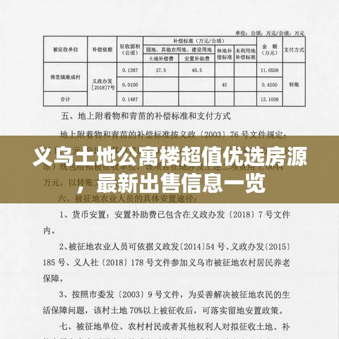随着城市化进程的加速,义乌市的房地产市场日益繁荣,对于寻求投资或自住的朋友来说,了解最新的房地产信息至关重要,本文将为您详细介绍义乌土地公寓楼出售的最新信息,带您走进义乌的房地产市场。