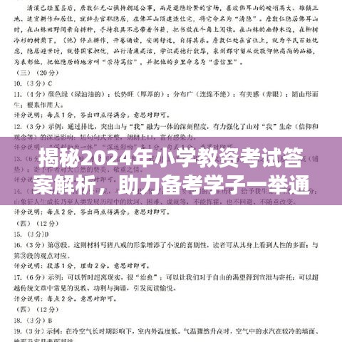 随着教育改革的不断深入,小学教育质量的重要性日益凸显,作为小学教育工作者,我们必须紧跟时代步伐,不断提高教学质量,本文将围绕“2024教资最新答案小学”这一主题,为广大小学教育工作者提供最新的答案解析,以期对教学工作有所启示和帮助。